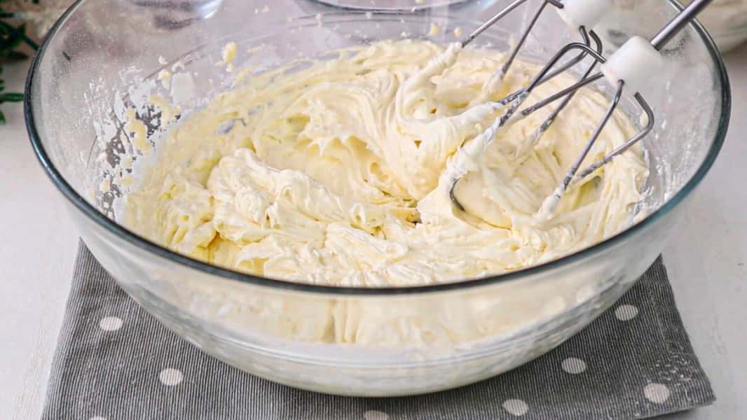 Готуємо крем. До м’якого вершковому масла 180 г. додаємо цукрову пудру 180 г і ванільний цукор 10 г. Збиваємо міксером 3-4 хвилини.