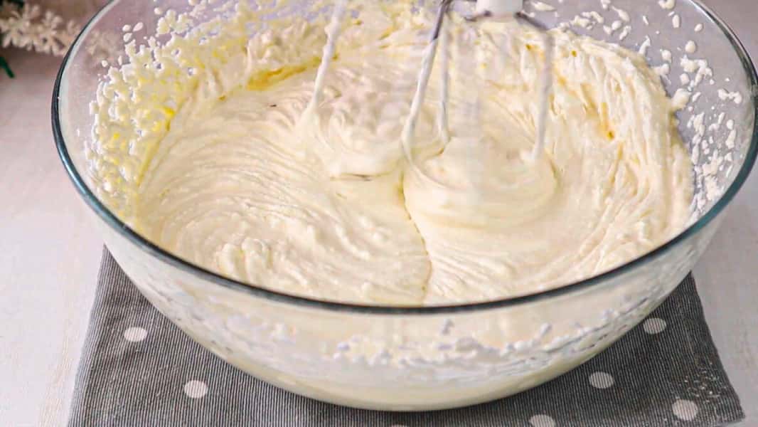 Далі додаємо сметану ( 15-18% ) 300 г. і так само збиваємо міксером 3-4 хвилини.