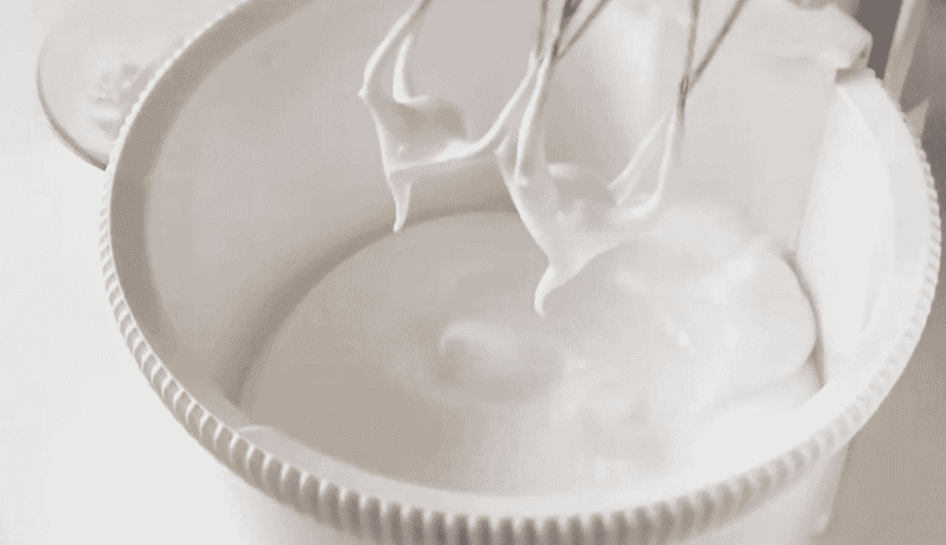 Білки збиваємо у пишну масу. Поступово додаємо цукрову пудру та збиваємо до міцних піків. Всипаємо крохмаль і перемішуємо все міксером.