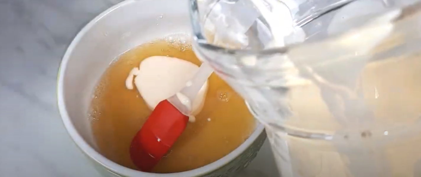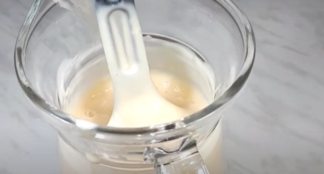 З’єднуємо обидві суміші та швидко-швидко перемішуємо ложкою до однорідності.