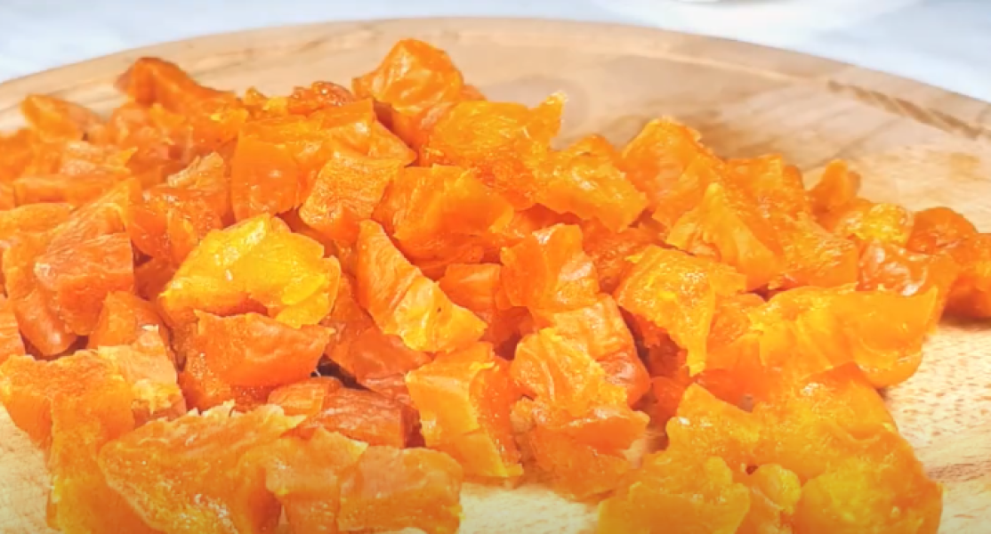 Цим часом підготуємо курагу – 100 г. Помиємо, обсушимо та наріжемо на дрібні шматочки.