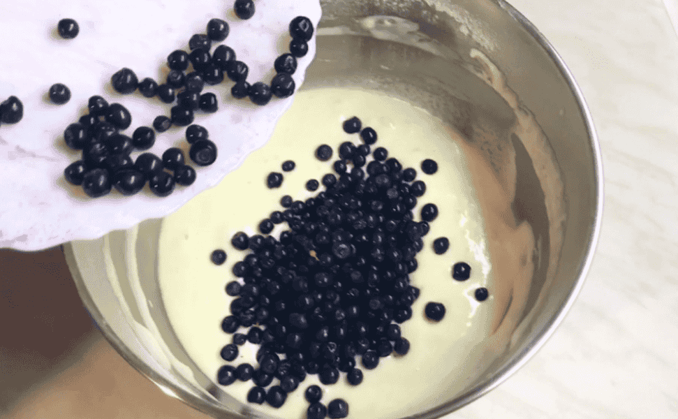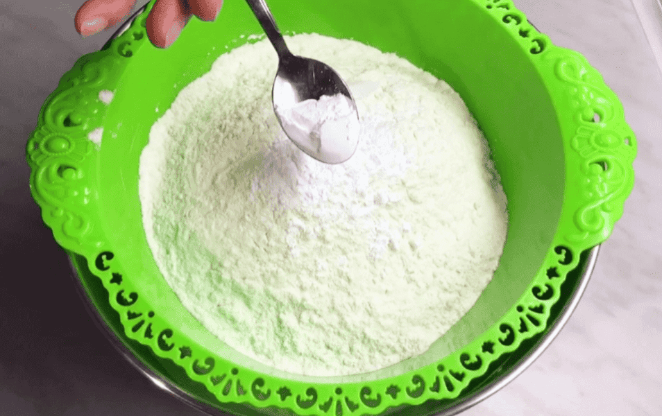 У пишну масу вливаю олію та молоко. Добре все перемішую, додаю борошно та розпушувач. Борошно можна просіяти заздалегідь, я зазвичай просіюю відразу в миску.