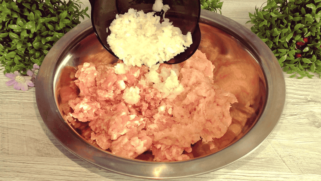 У фарш додати цибулю, її я подрібнила в блендері. Можна дрібно порубати.