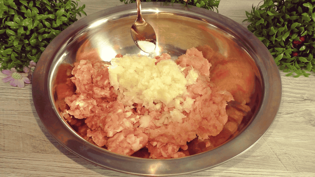 Фарш у мене змішаний – свинина і курка. Ви можете використовувати будь-який фарш по Вашому смаку.