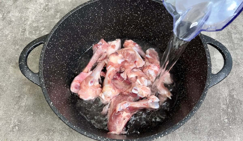2. Кістки перекладаємо в каструлю, варимо бульйон і, по готовності, повністю остуджуємо.