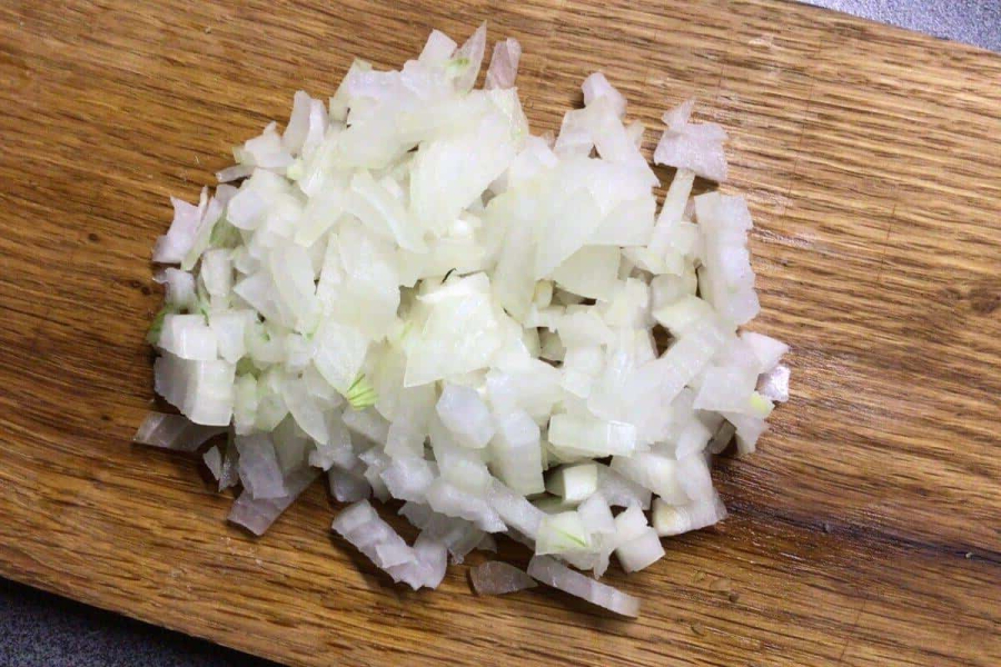 Дрібно подрібнюємо ріпчасту цибулю.