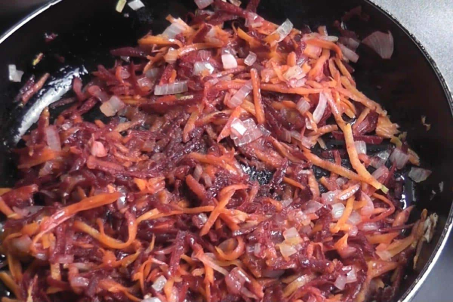 Потім додаємо дрібно нашаткований буряк.