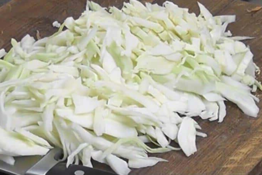 Капусту шинкую тонкою соломкою.
