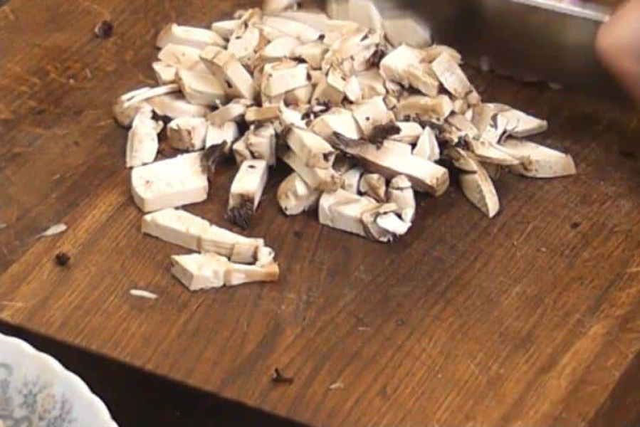 Гриби нарізаємо кубиками.