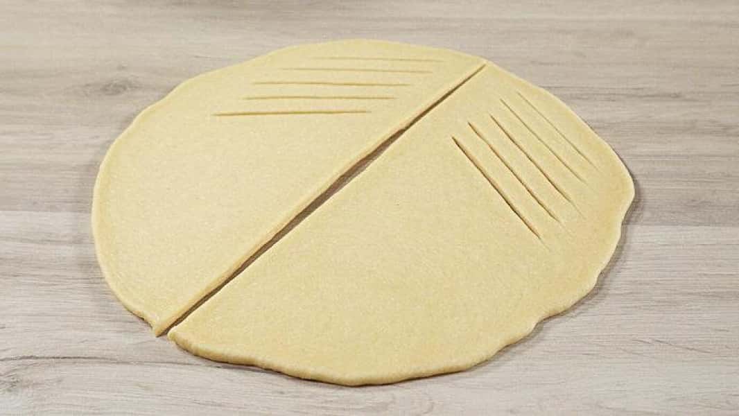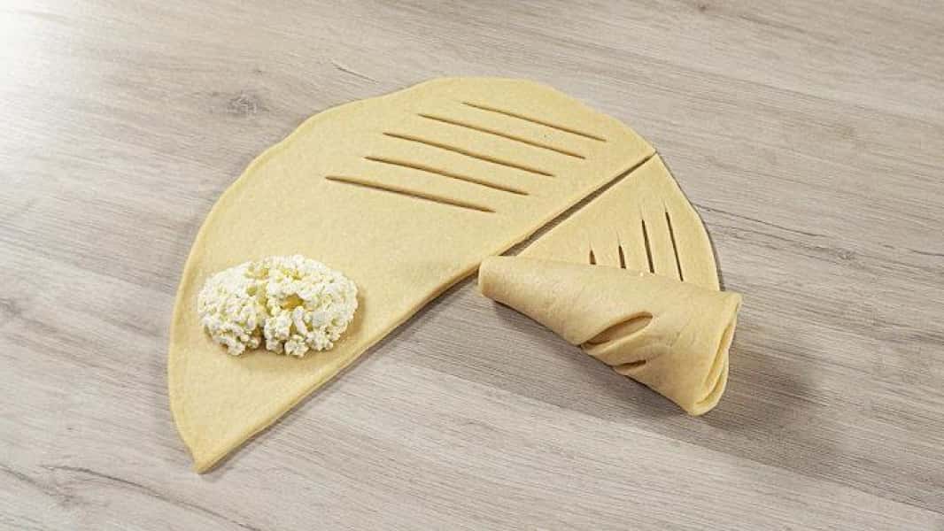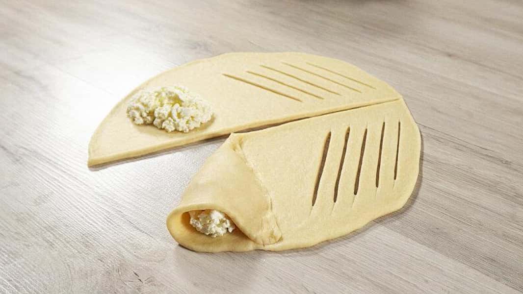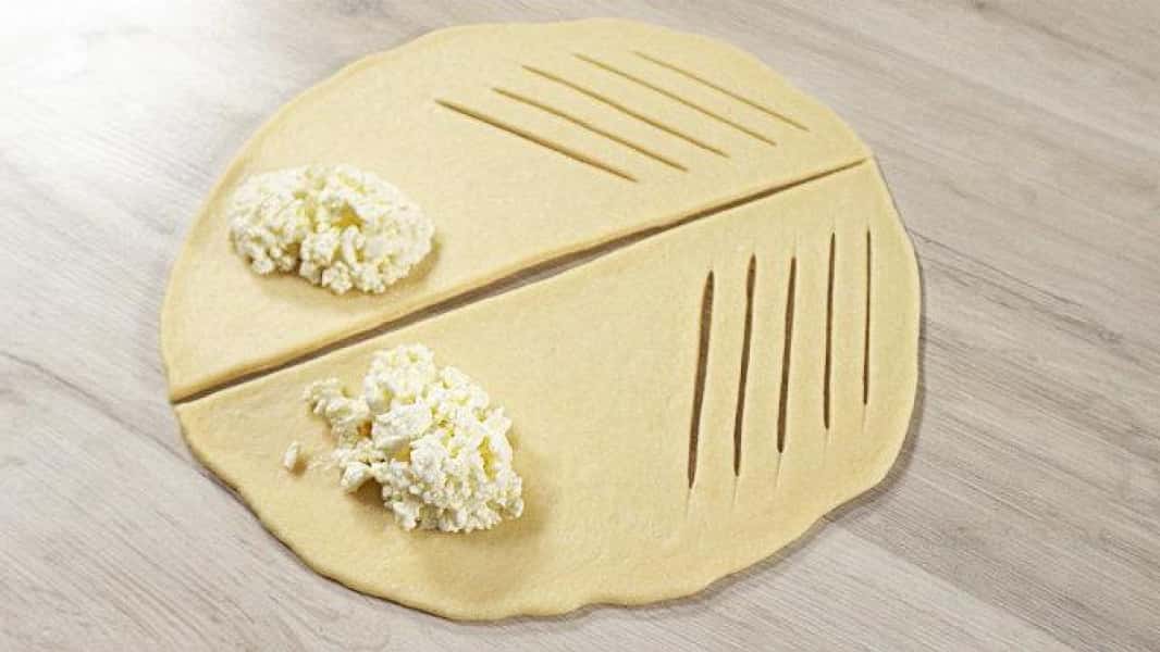 - Я зробила візерунок з одного боку частини у вигляді надрізів. А на іншу сторону викладаю сир.