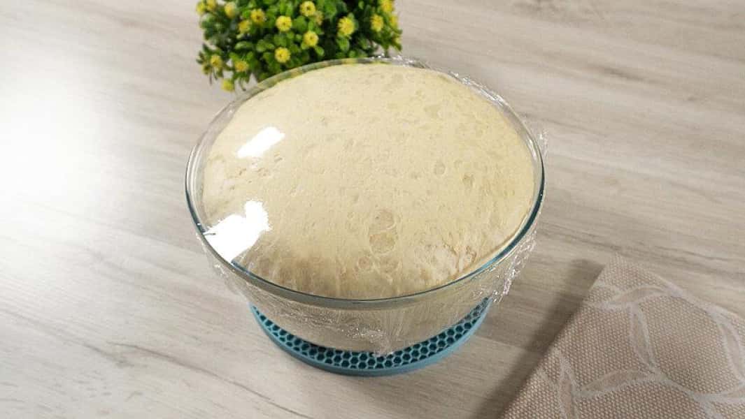 - Замішуємо тісто і залишаємо його в чаші під харчовою плівкою, рушником на 1 годину в теплому місці.