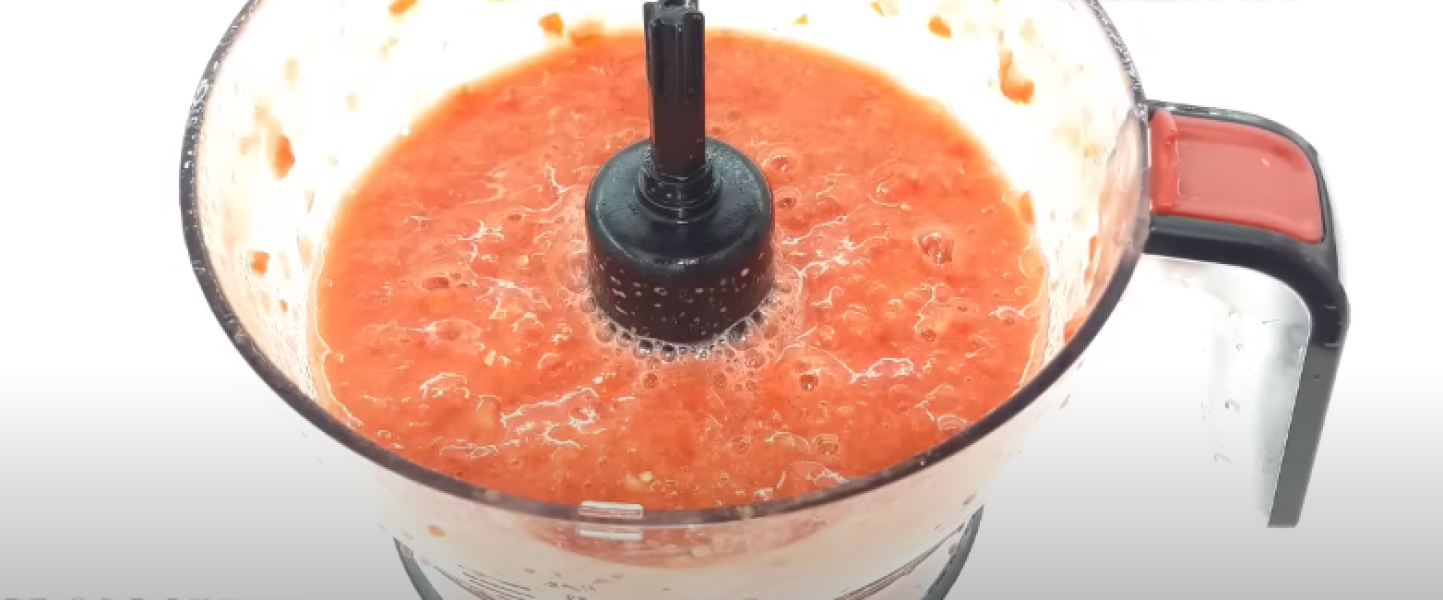 Подрібнюємо 1 стручок гострого перцю (прямо з насінням) та 200 гр. часнику (я це зробила за допомогою подрібнювача).