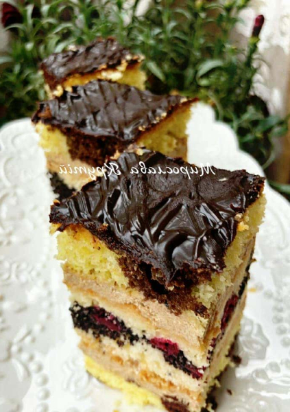 Ось такий цікавий і смачний пляцок я спекла. Тут поєднані пухкі бісквітні коржі, пісочний мякий корж з маком і кислинку додає вишня, а кавовий крем нагадує ,що ми у Львові де багато кави і шоколаду.