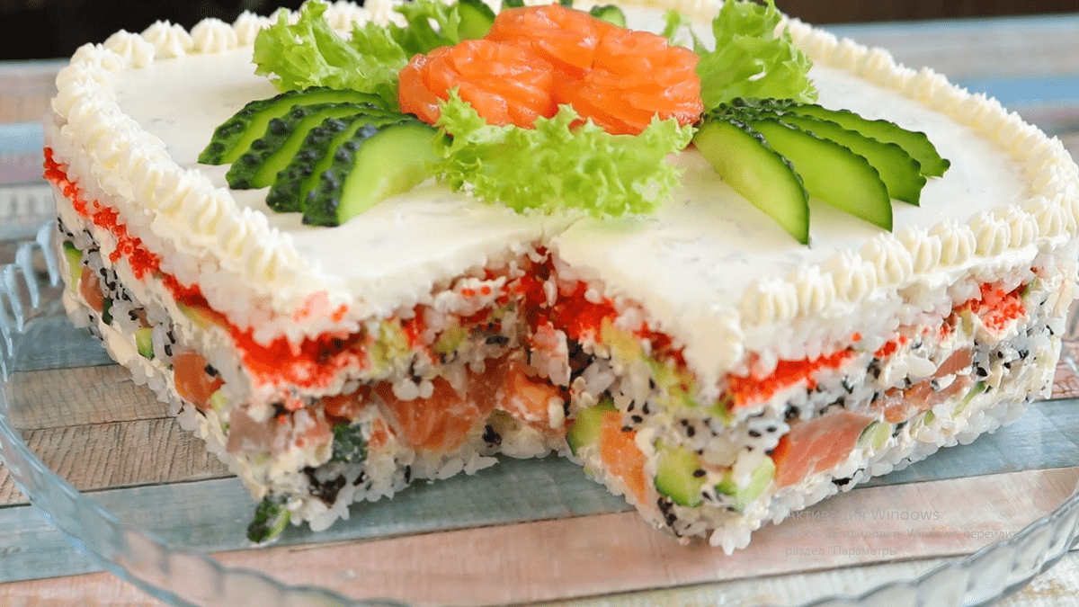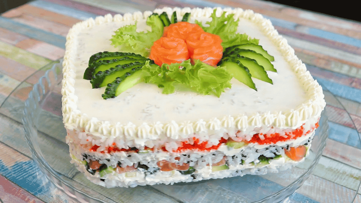 Цей суші-торт сподобається всім гостям без винятку. Це справжня родзинка святкового столу.