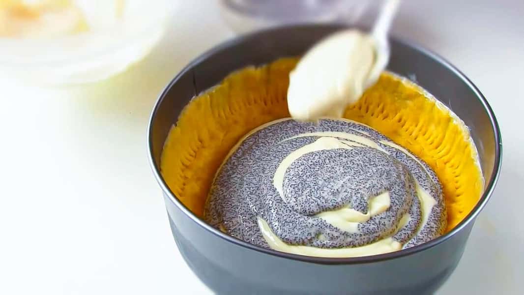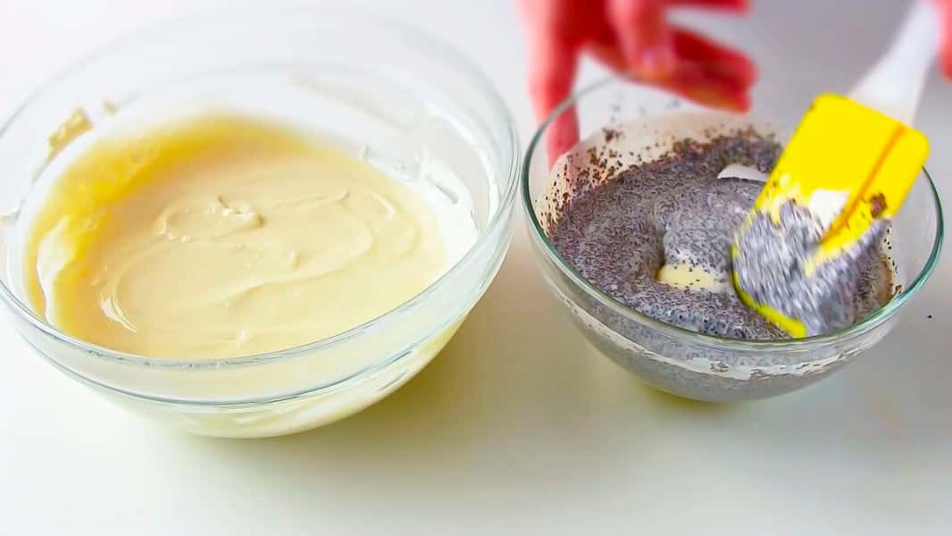 В ту частину яка менше додаємо мак і перемішуємо.