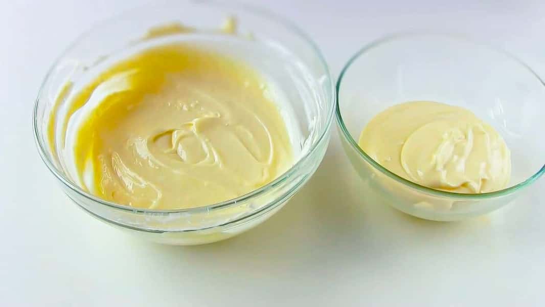 Поділяємо крем на дві частини.