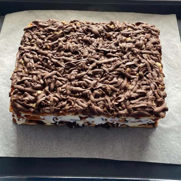 - Дати торту просочитися 1:00 при кімнатній t, потім на 10:00 прибрати в холодильник.