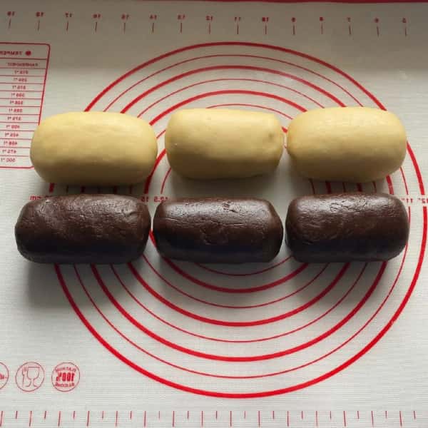 - Кожен вид тіста поділити на 3 рівні частини.