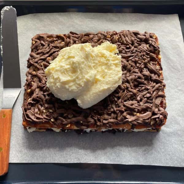 - Збираємо торт. Корж-крем-корж-крем-корж.