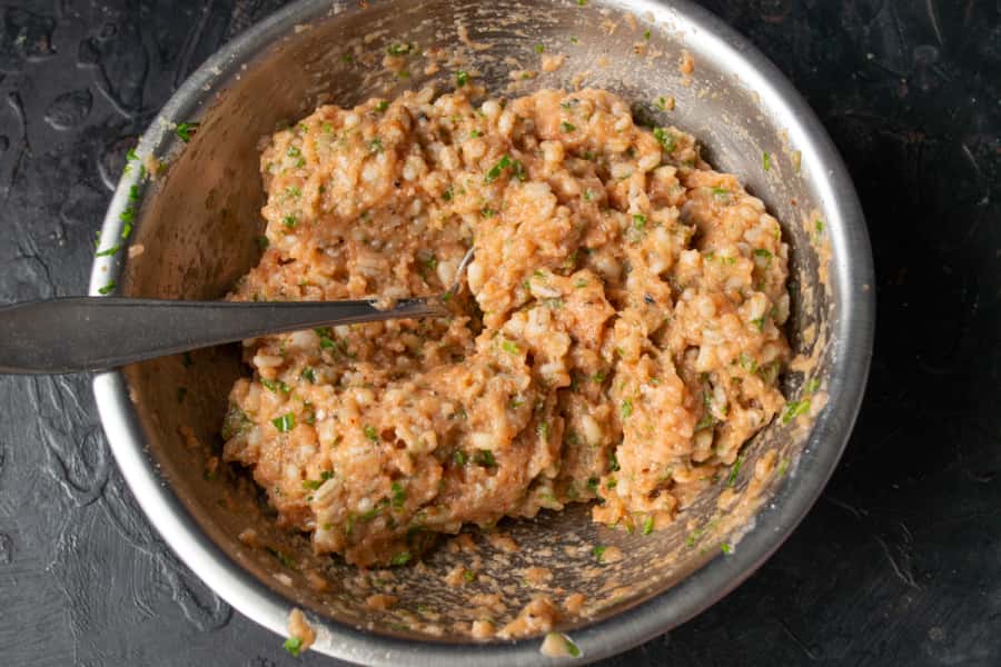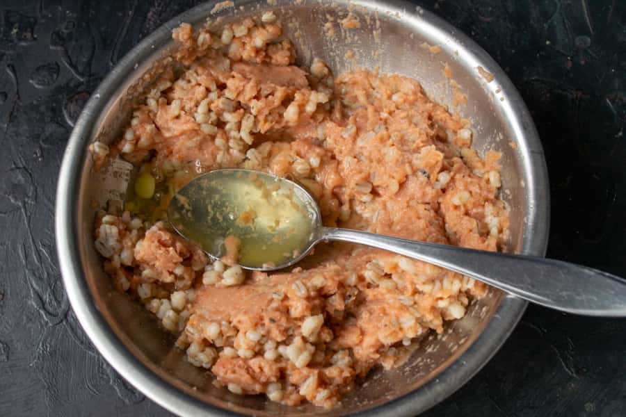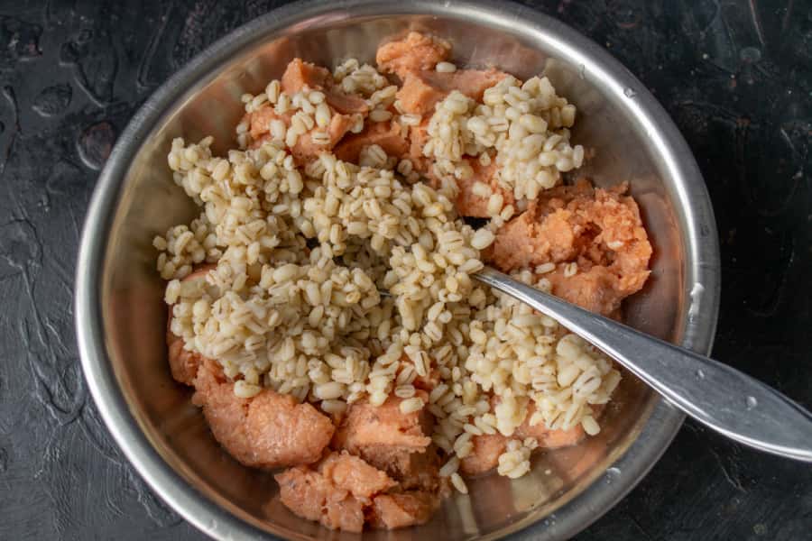 Змішуємо рибний фарш з холодною перловкою.