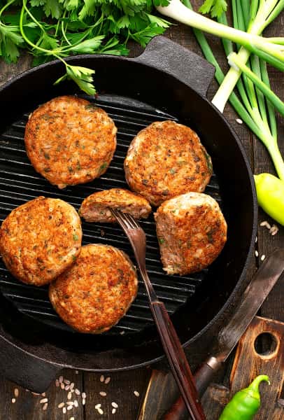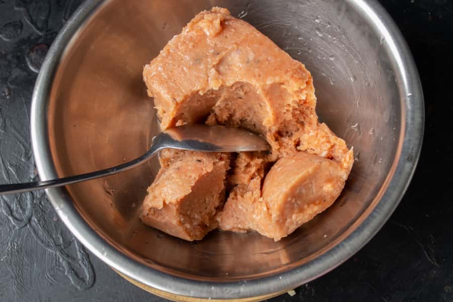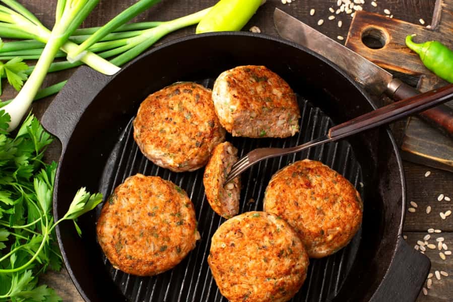Фарш з лосося розморожуємо на нижній полиці холодильника – зручно дістати з морозилки ввечері, до ранку фарш якраз відтане.