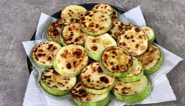 - Кабачки нарізаємо кружечками і солимо з обох боків. Якщо шкірка місцями брудна, обов’язково очищаємо такі місця за допомогою овочечистки.