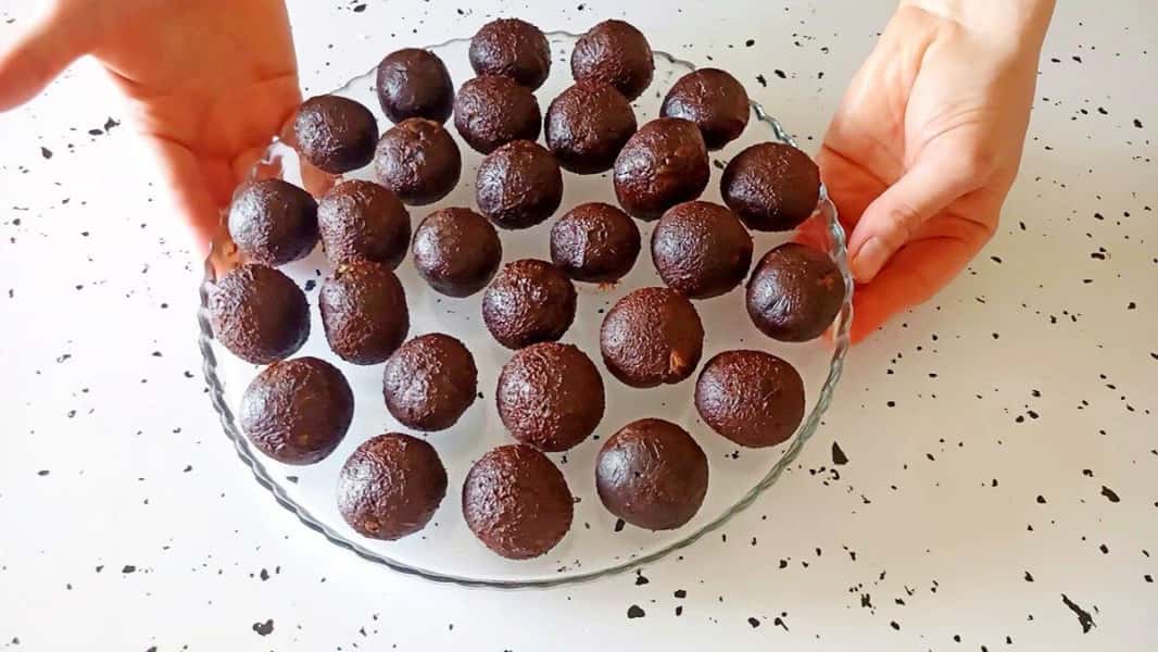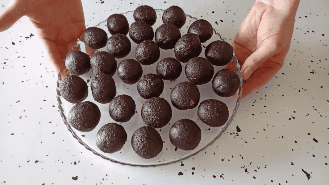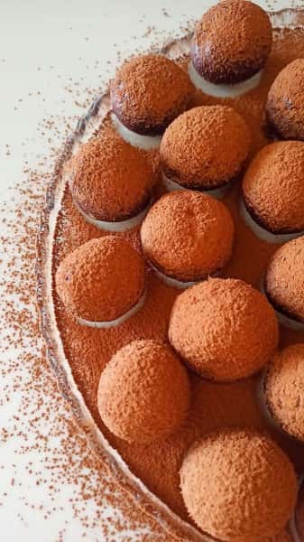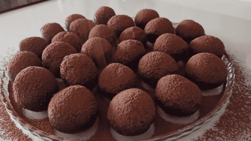 Додатково обсипаю шоколадні цукерки какао порошком, щоб надати завершений вигляд.