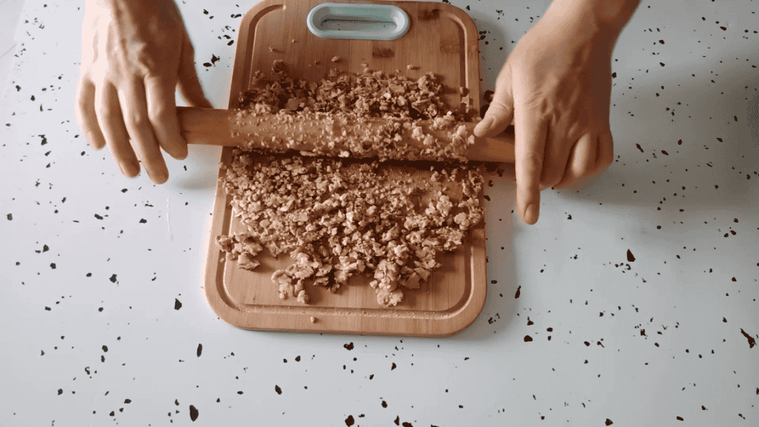 Волоські горіхи необхідно також подрібнити на дрібні фрагменти. Я зазвичай використовую скалку, ви можете подрібнити в блендері і ножем.