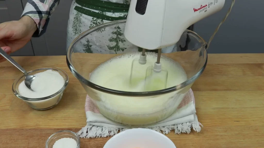 Білкова піна добре триматиме форму і стане щільною. Для бісквіту дуже важливо добре збити білки.