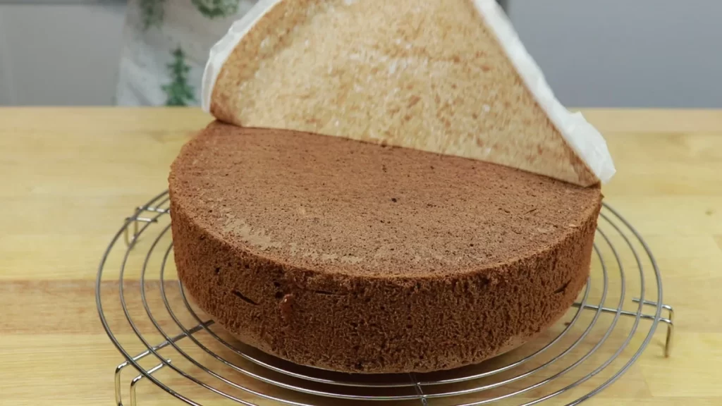 Перевертаю бісквіт остигати на решітку. Коли бісквіт охолоне, підрізаю його краї форми тонким і гострим ножем.