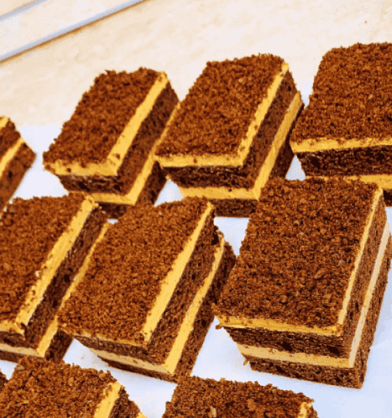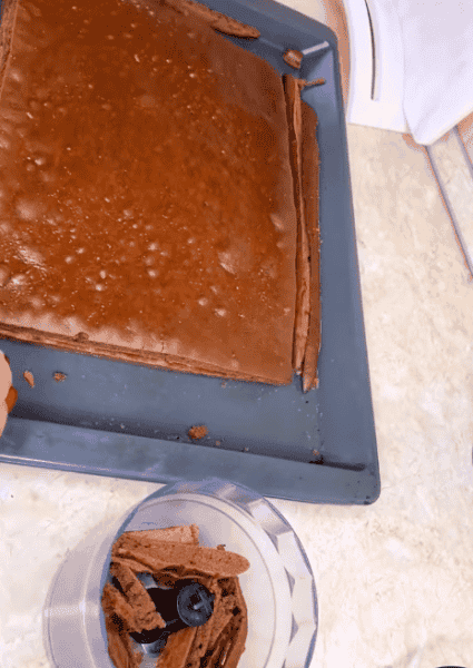 Випікаємо в заздалегідь розігрітій духовці на 180 ° С (20-25 хвилин). Відрізаємо краї коржів, і їх подрібнюємо в блендері.
