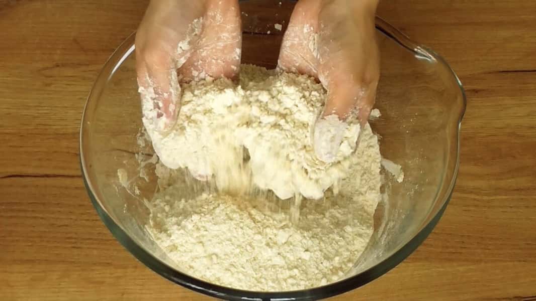 6. До борошна додати м’яке вершкове масло і перетерти все в крихту.