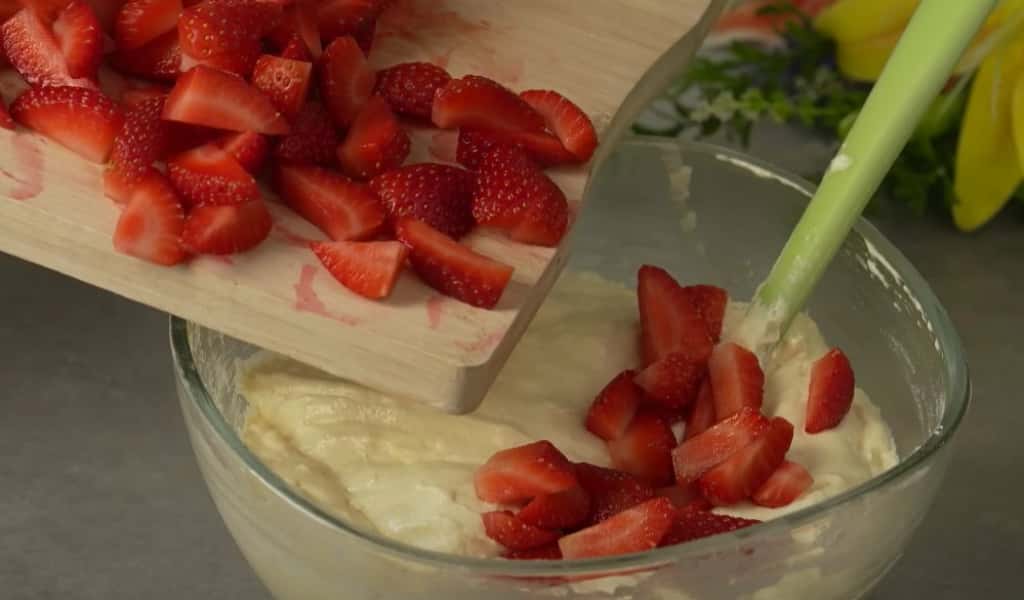 Додаємо фрукти або ягоди. З полуницею виходить просто чудово!