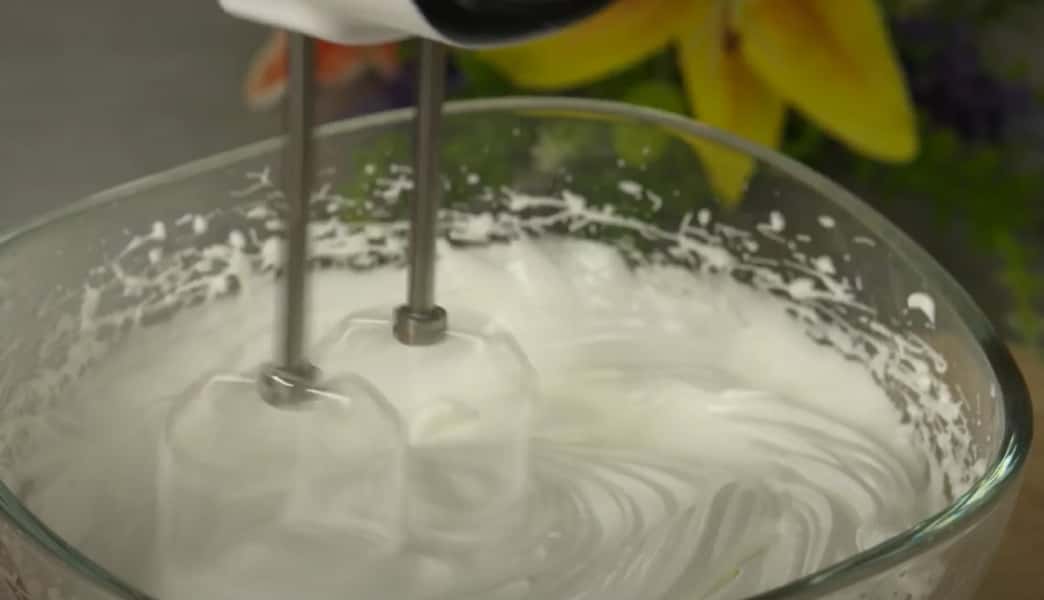 Окремо збиваємо білки з цукром близько 6-7 хвилин, до густої білої маси.