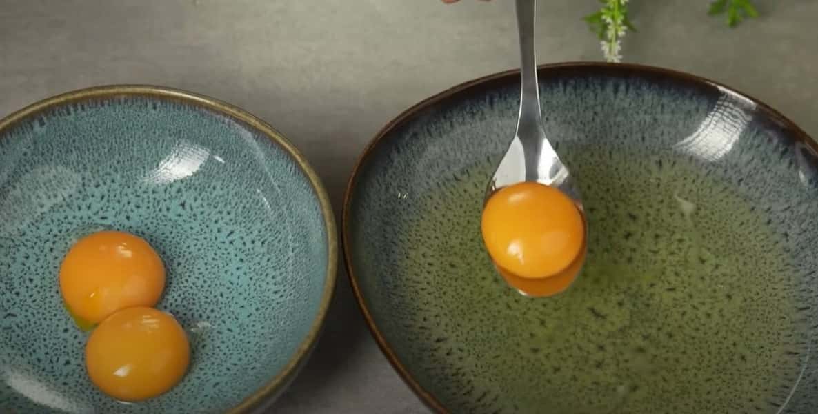 Розбиваємо 3 яйця і обережно відділяємо білки від жовтків.