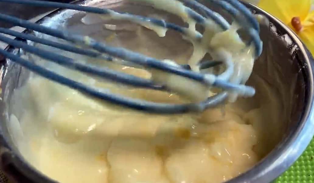 Потім додайте в суміш розм’якшене вершкове масло і перемішайте, поки воно не розтане.