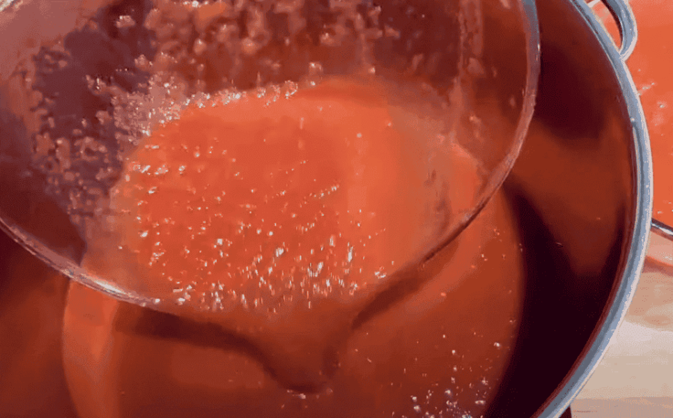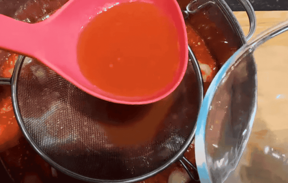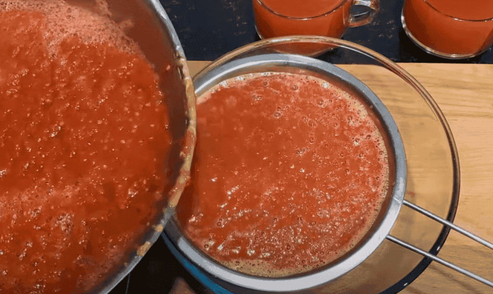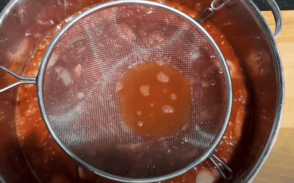 5. Беремо сито, таке, щоб насіння від томатів не проходило через нього. Занадто дрібне не беріть. Починаємо протирати майбутній кетчуп.