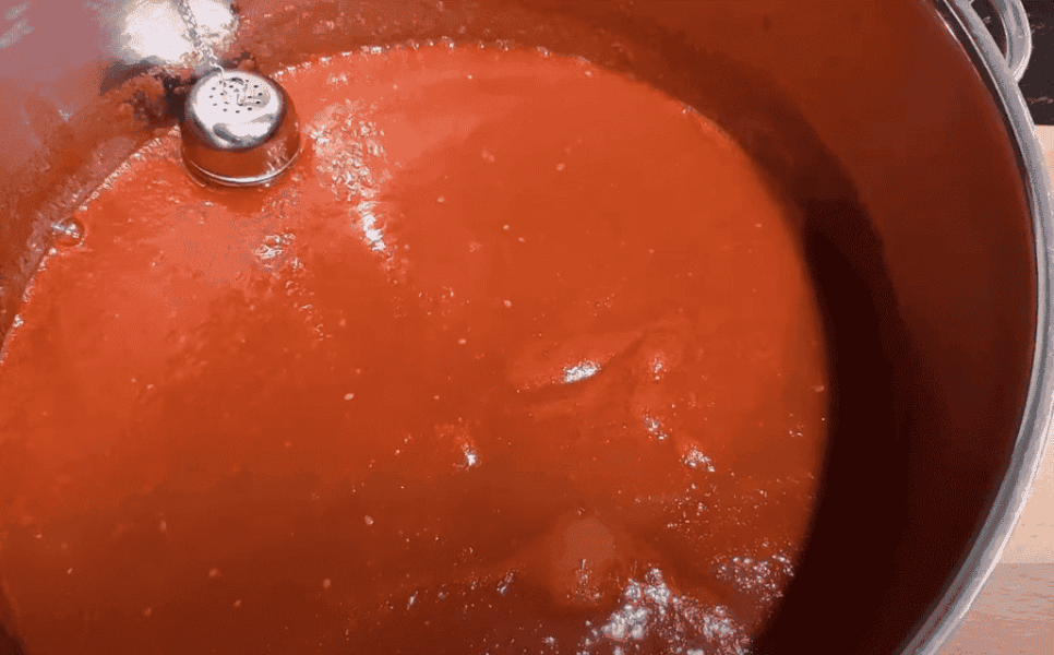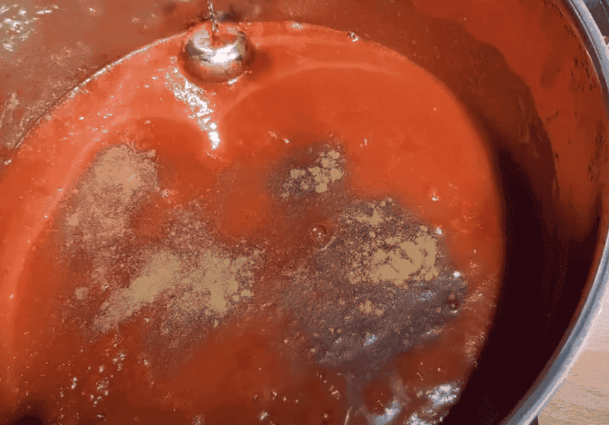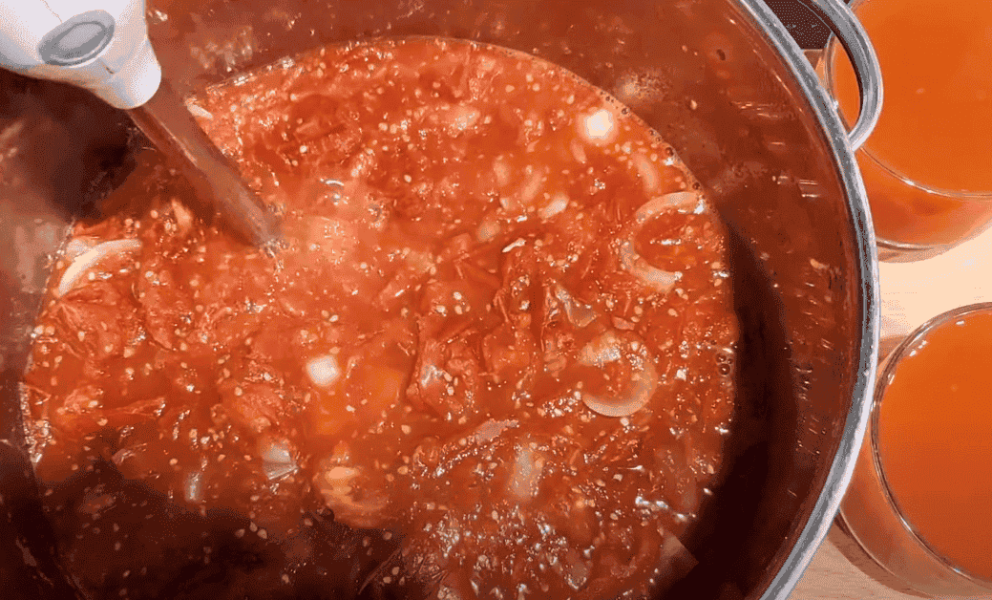 На дні чашки зовсім небагато томатного соку, решта прозорої рідини, яку довелося б випарювати мінімум 2 години, а так все швидко і просто.