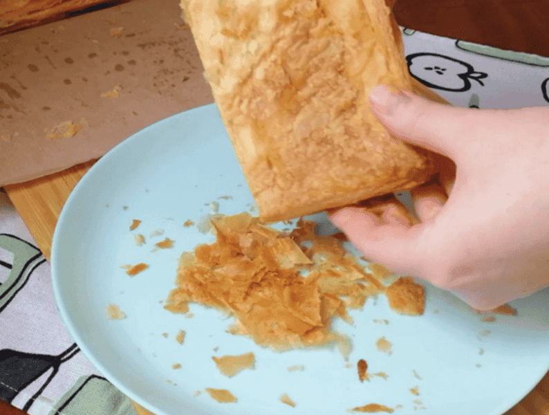 Прибираємо верхній шар, що підрум’янився, це буде майбутня посипка для нашого торта.