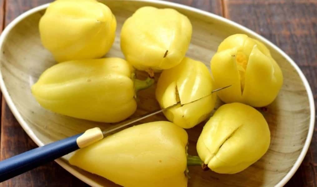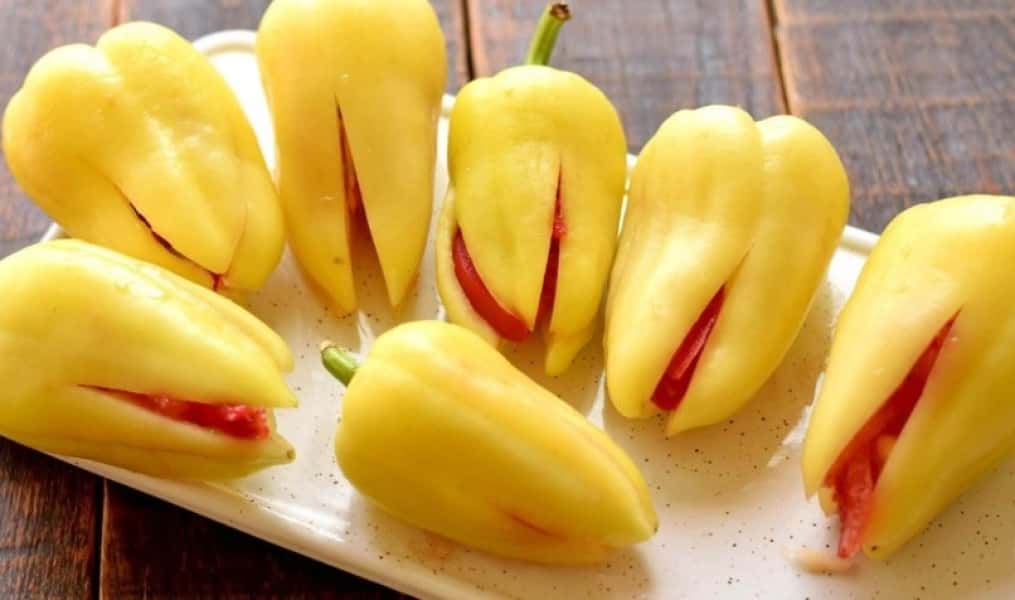 Ретельно моємо болгарський перець. Обсушуємо його. Робимо надрізи для фарширування.