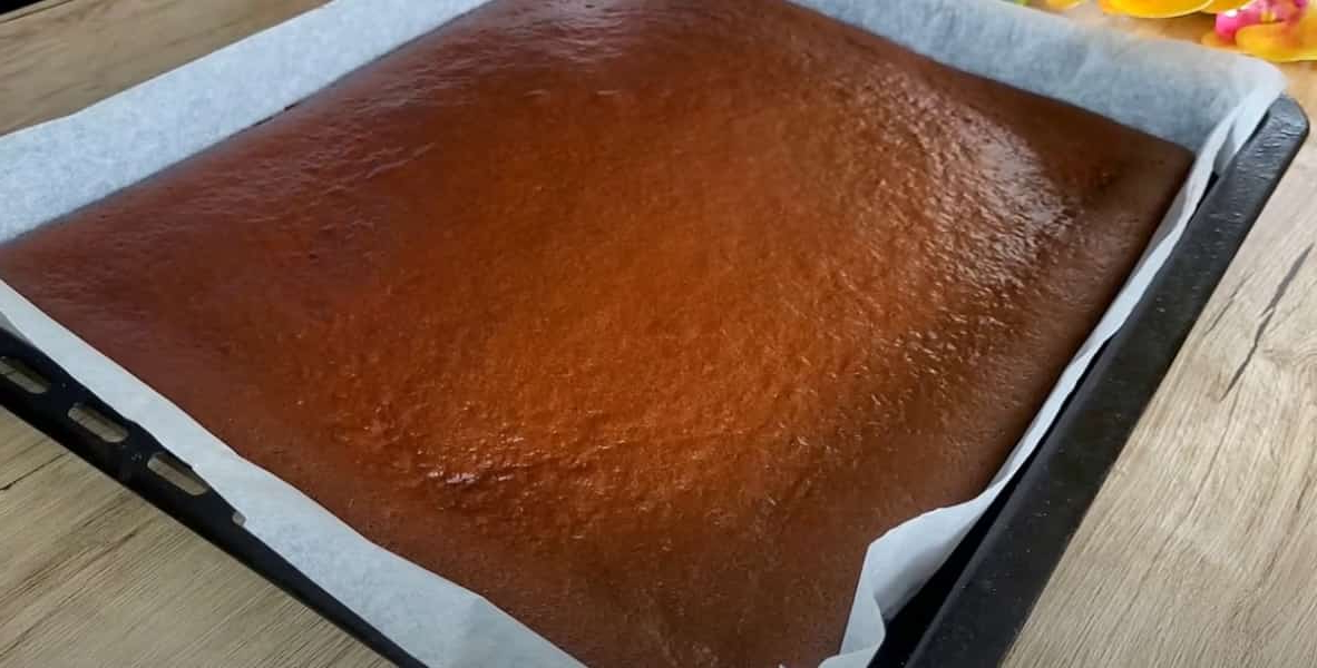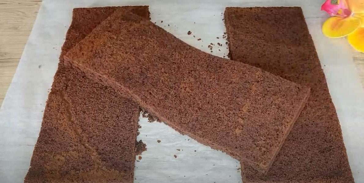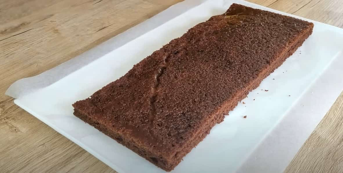 Переверніть корж на інший аркуш пергаменту, зніміть той, на якому випікався, і залиште охолоджуватися.