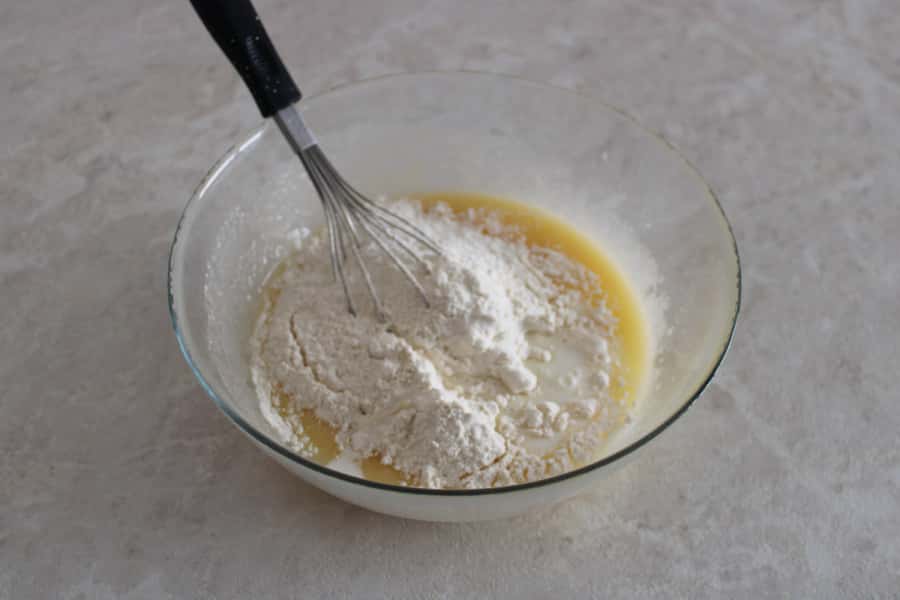 Борошно додаємо в два прийоми.