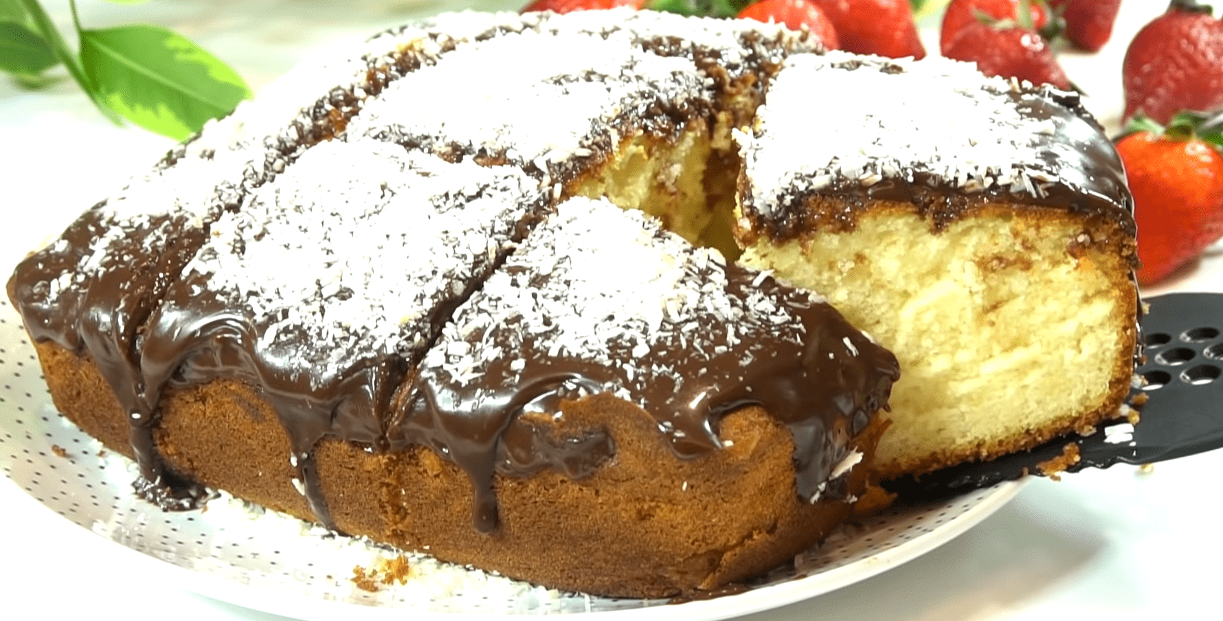 Бісквітний кекс з шоколадною глазур’ю і кокосовою стружкою