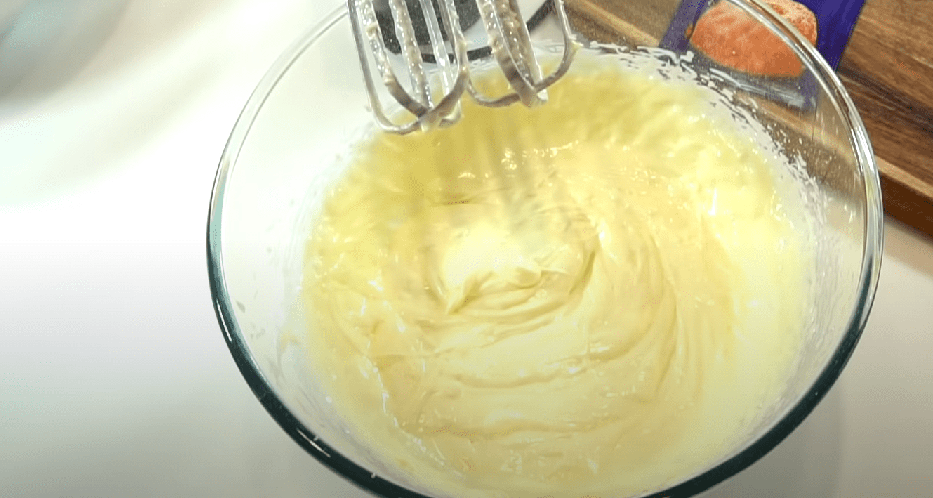 До м’якого масла додамо 200 грам цукрової пудри і збиваємо міксером до збільшення маси в об’ємі та пишності.