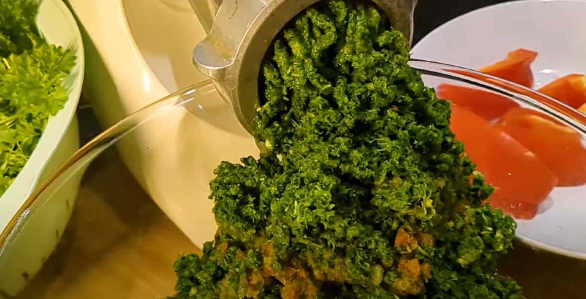 4. Потім петрушку, часник, солодкий перець пропускаємо через м’ясорубку.