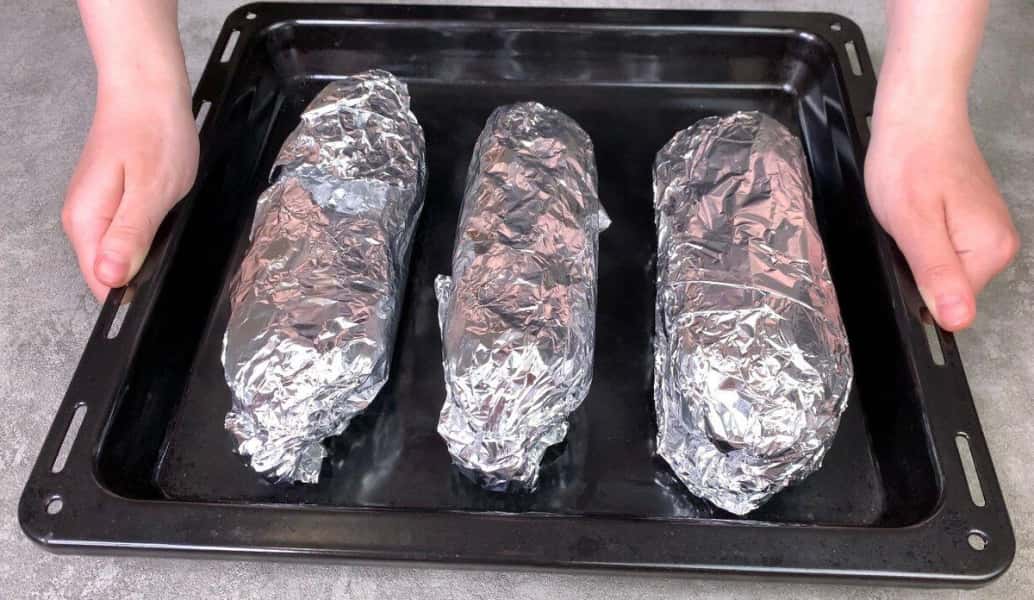 6. Щільно загортаємо шматочки в фольгу і запікаємо в духовці 1 годину 30 хвилин при температурі 180 градусів.