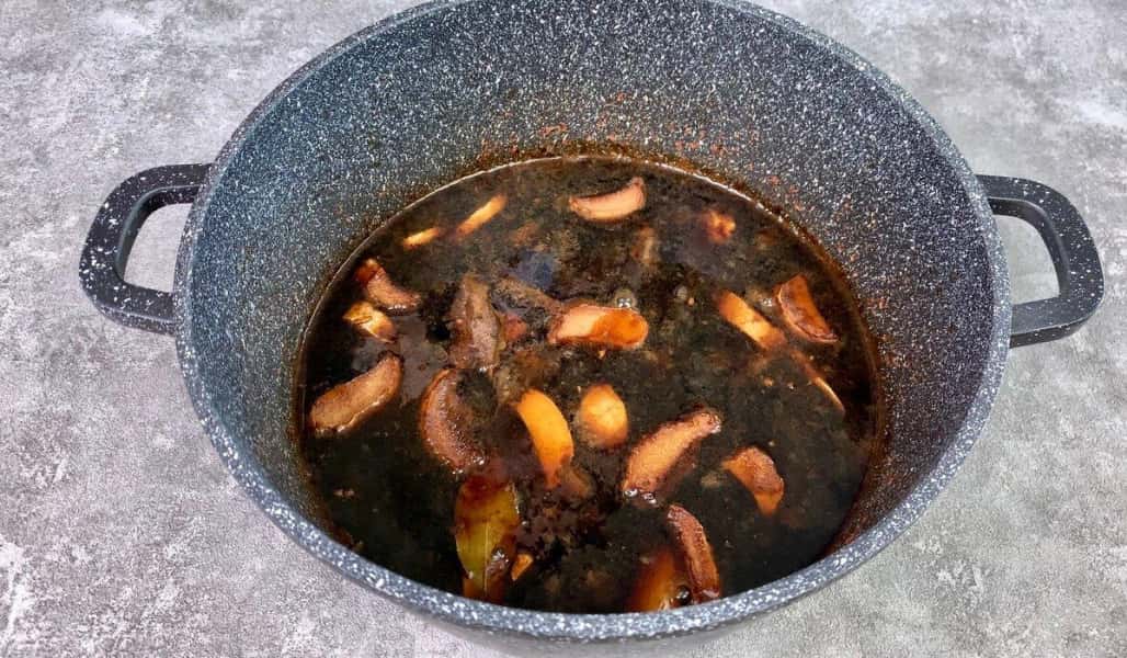 Варимо на повільному вогні 30 хвилин і при необхідності підливаємо воду. Готовий маринад остуджуємо до кімнатної температури.