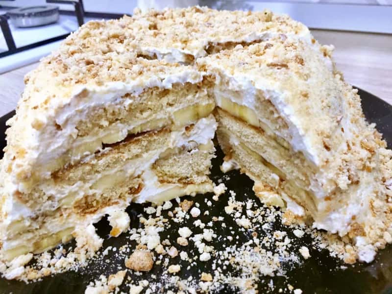 Повторюємо шари, поки не закінчаться пряники, сметана і банани.
