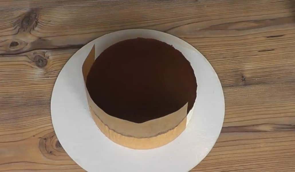 Дістаємо торт з холодильника і заливаємо поверхню торта раніше приготованим шоколадом. Розрівнюємо шоколад. Можна трохи потрясти торт, щоб вирівняти шоколад ідеальніше. Ми залишаємо торт в холодильнику ще на 3 години, після чого можна діставати торт, знімати з нього форму з папером і приступати до дегустації. Приємного Вам чаювання!