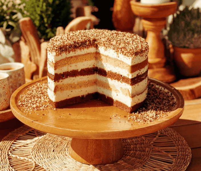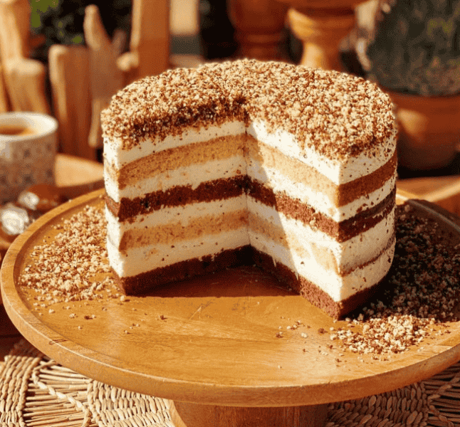 Складання торта: Просочуємо коржі кремом, потім посипаємо торт крихтою для прикраси!